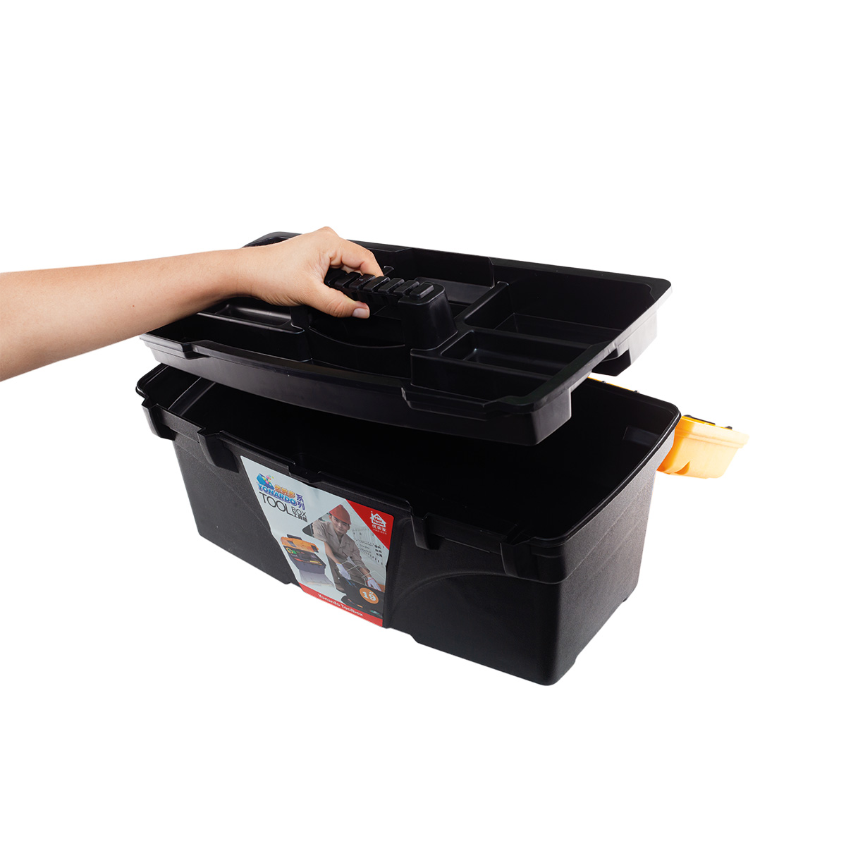 ¡Mantén tus herramientas organizadas y a mano con esta caja de herramientas resistente y espaciosa! Este Zetapremio es perfecto para ti que disfrutas de los pequeños arreglos en el hogar. Además, tiene un asa de transporte ergonómica y un amplio compartimento.