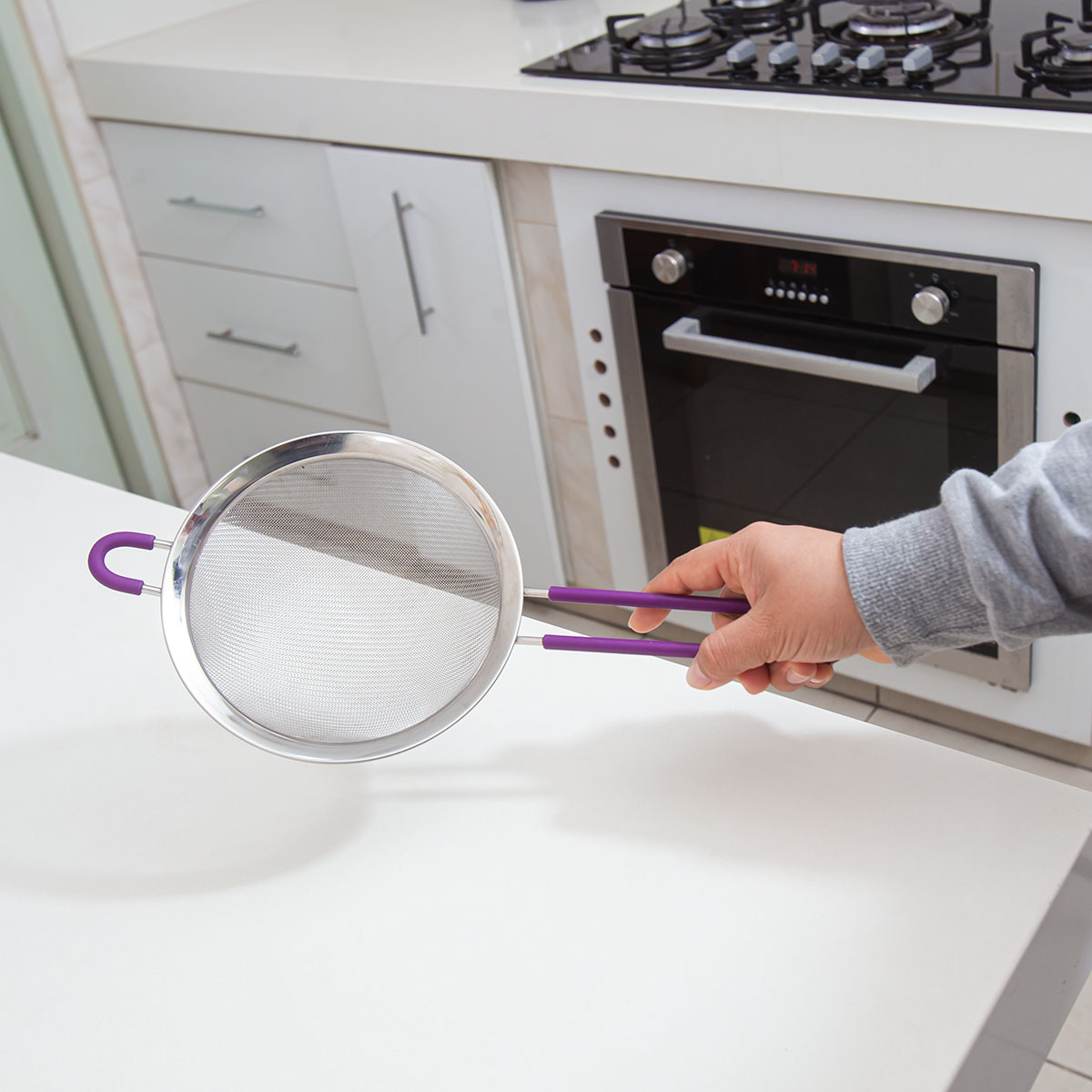 Colador de acero inoxidable ideal para lavar frutas, verduras o colar caldos.