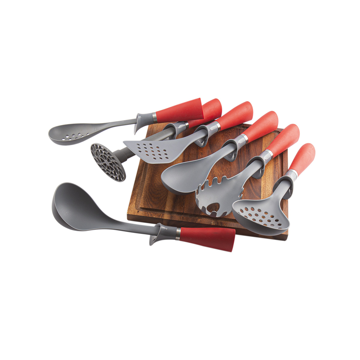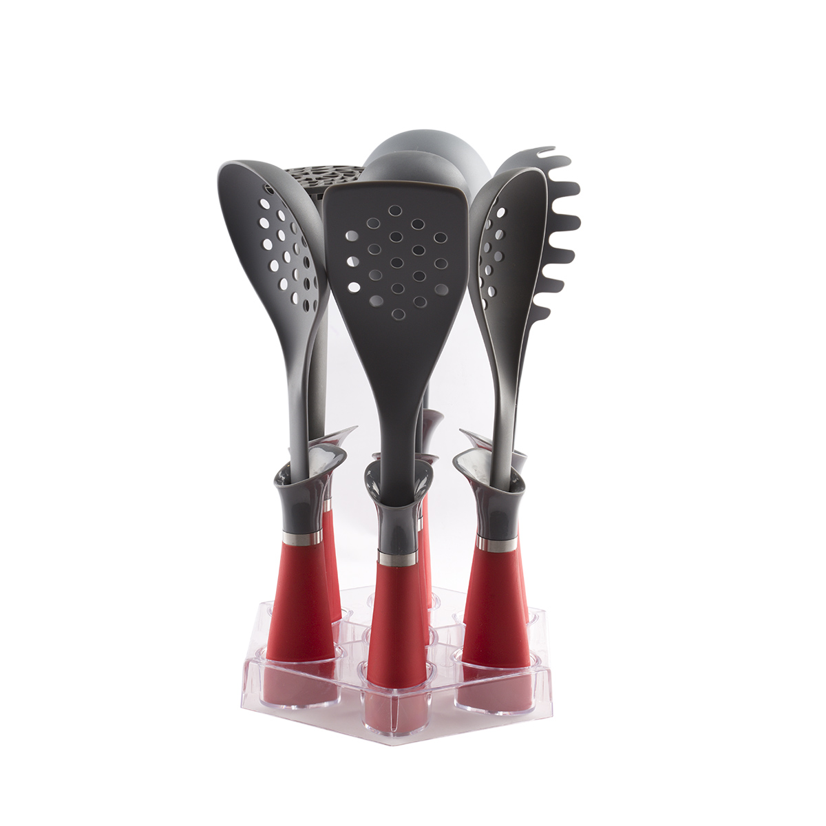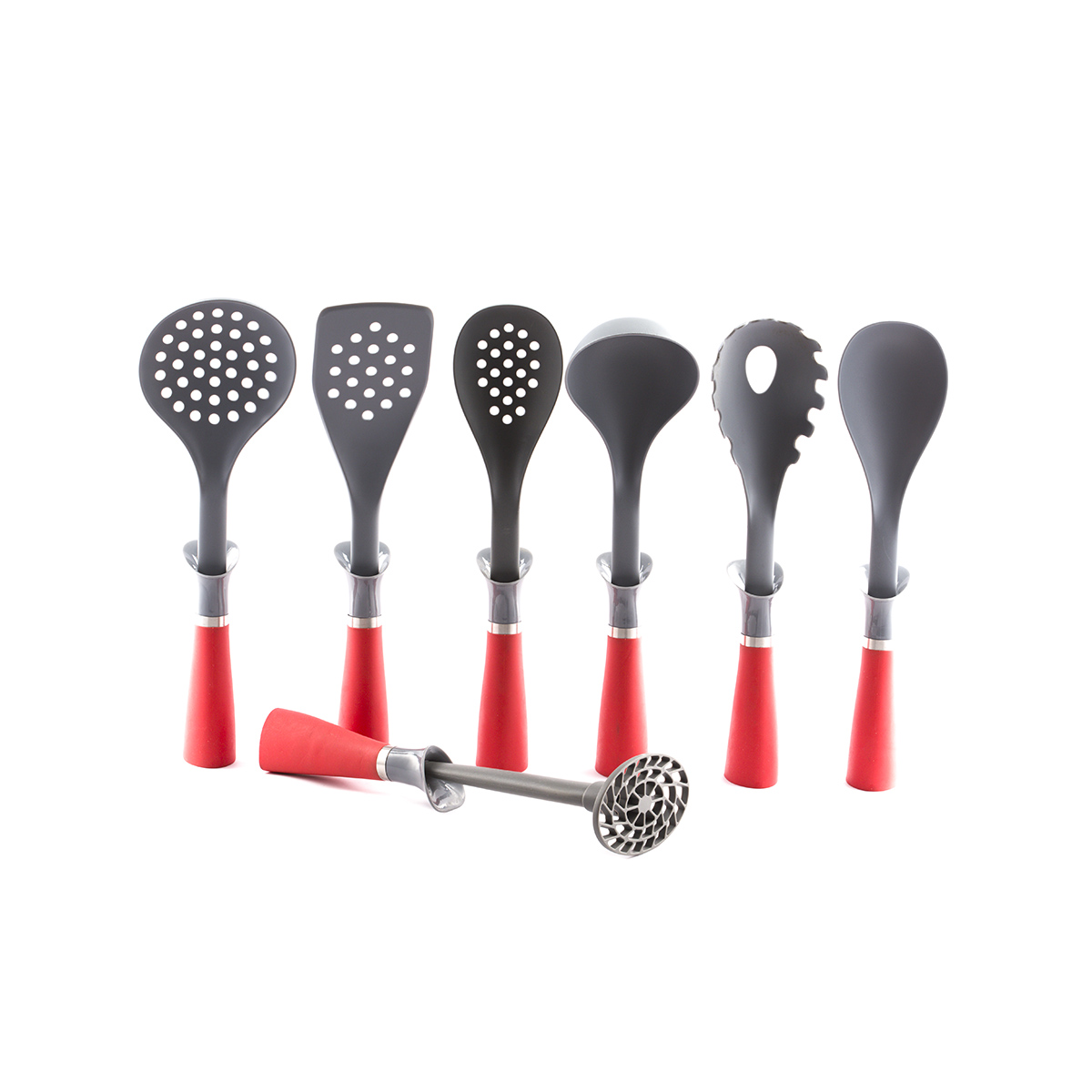 Rodearte de accesorios de calidad y que sean muy útiles, harán tu estadía en la cocina un momento de diversión y creatividad. Estos cucharones se convertirán en tus mejores amigos a la hora de preparar deliciosos platillos. El set incluye: una base para colocar los cucharones, un cucharon para pasta, un cucharón para sopa, una espátula, una cuchara para arroz, una cuchara ranurada y un triturador de papas. Este producto cuenta con variantes de color que serán seleccionados aleatoriamente en base a su disponibilidad.