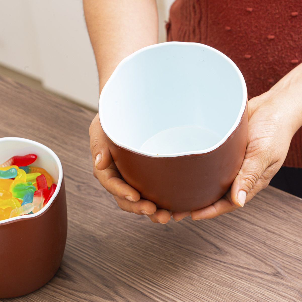 Este contenedor con bordes ondulados puede ser un gran asistente. Te puede ayudar en la cocina, sosteniendo los objetos de uso frecuente, los vegetales para preparar la ensalada o como tacho de basura mientras cortas y pelas. También te puede ayudar en el baño, puedes usarlo para contener tus artículos personales, cepillos, maquillaje, etc.