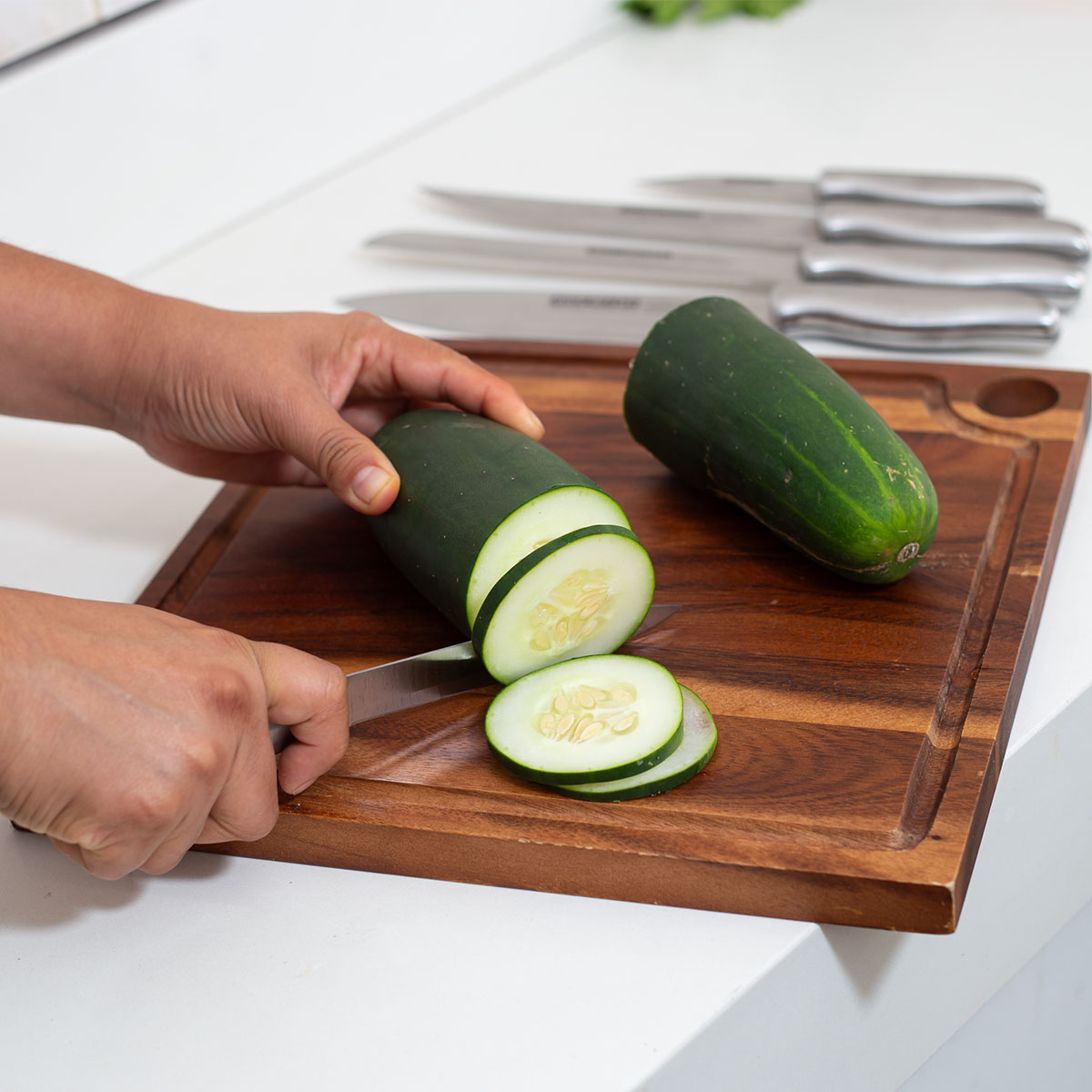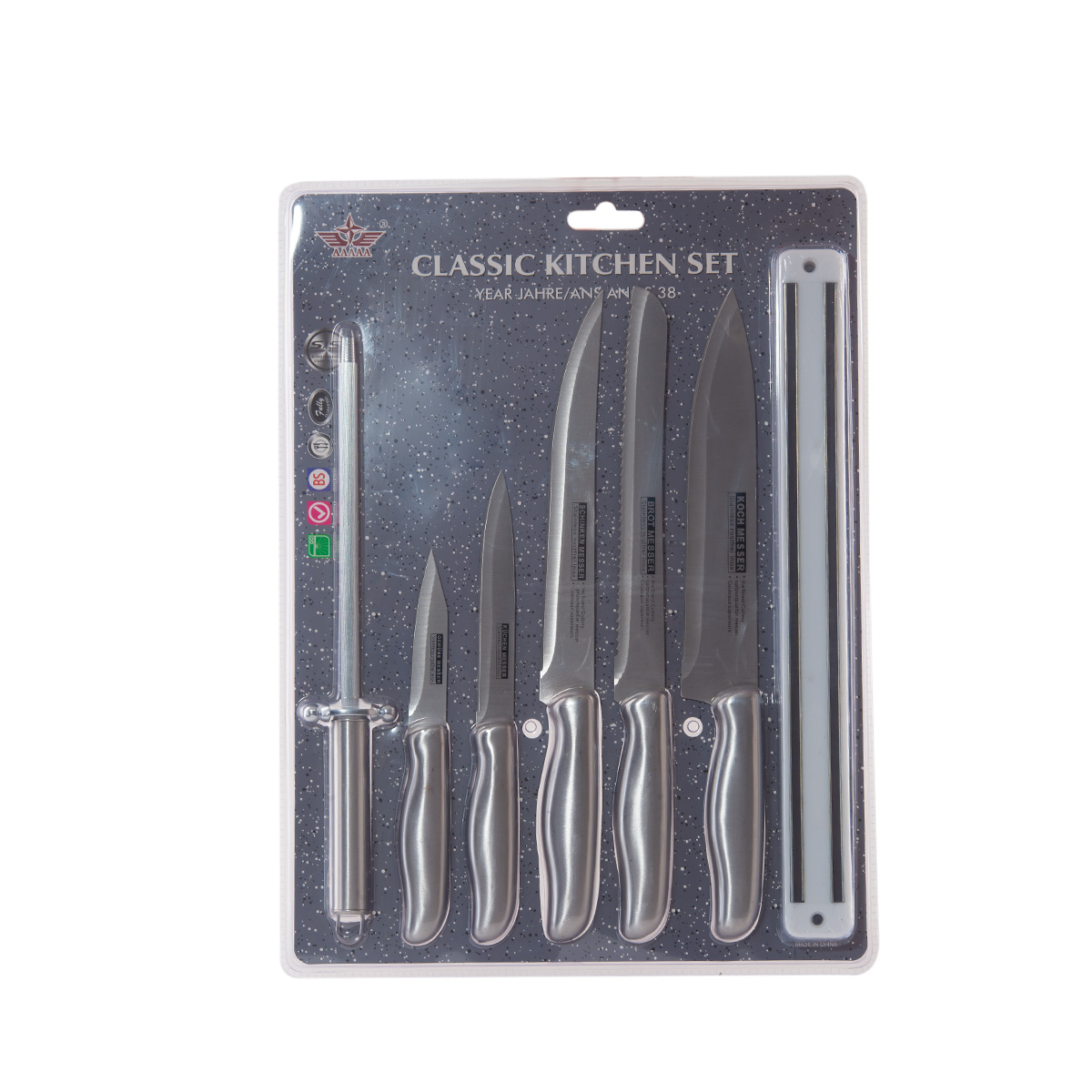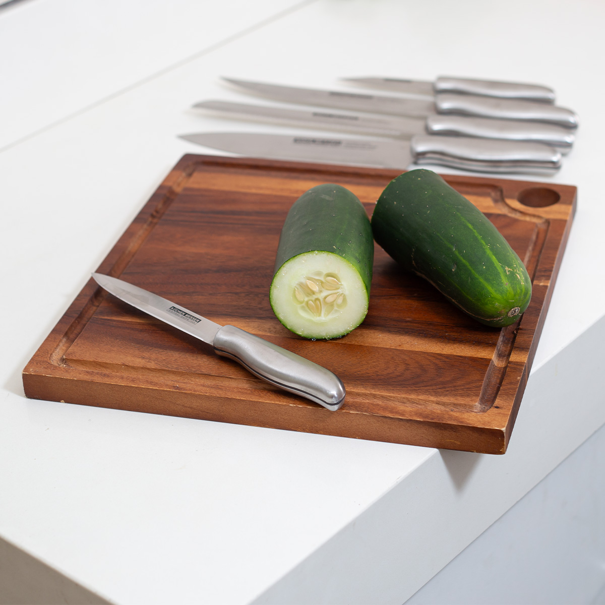 Transforma tu cocina en un espacio de creación culinaria con nuestro Zetapremio. Este Juego de Cuchillos para Cocina incluye todo lo necesario para cortar, picar y preparar con precisión. Desde verduras hasta el pan más crujiente, cada cuchillo está diseñado para ofrecerte la mejor experiencia. Incluye un afilador para mantener siempre el filo perfecto y un soporte magnético que aporta orden y estilo a tu cocina. Ideal para los chefs de la casa que buscan calidad y eficiencia.