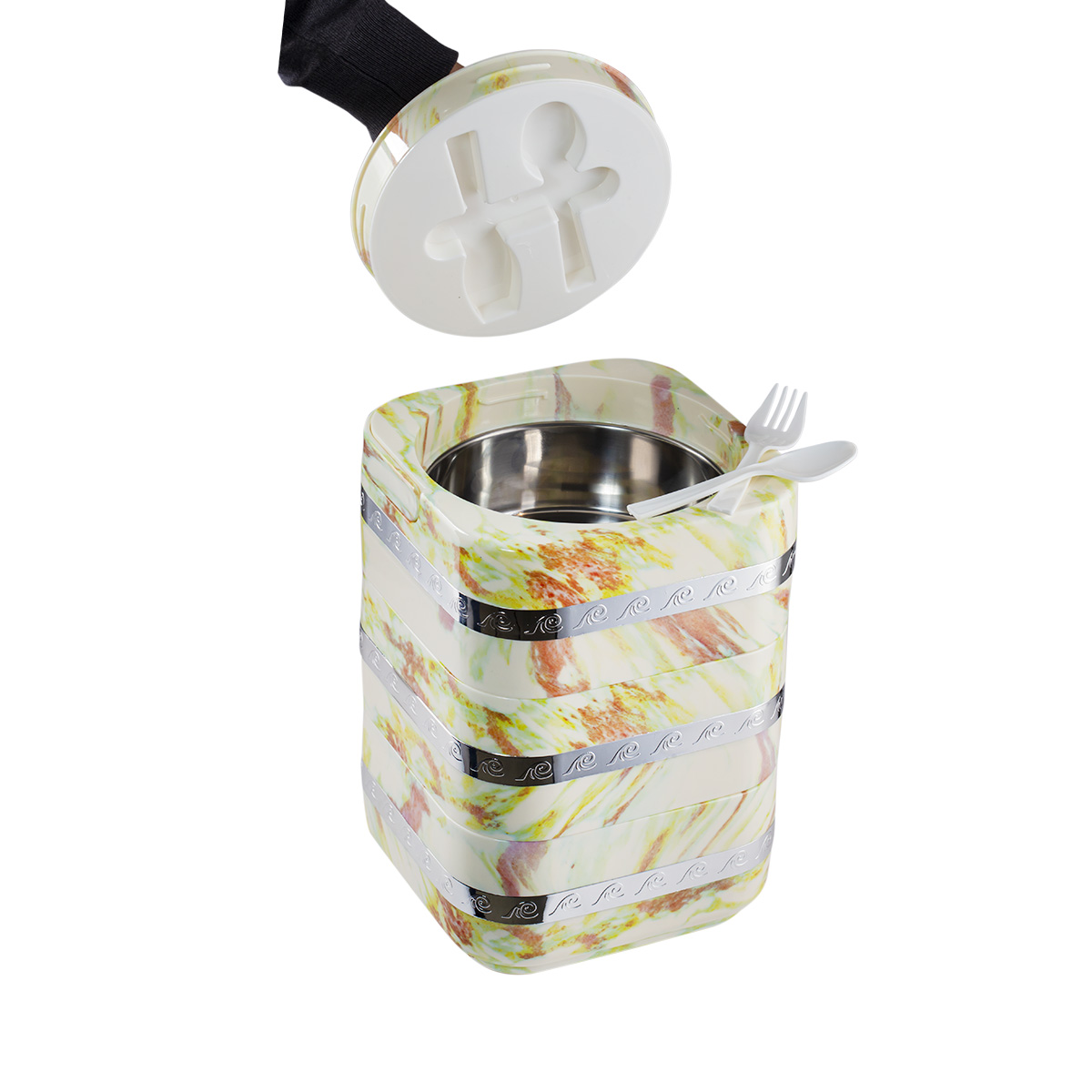 Esta elegante y útil lonchera de tres niveles es ideal para tus días de picnic, paseos fuera de casa, campamentos, incluso para llevar snacks a la playa. En ella, podrás mantener tus comidas mucho más frescas durante un largo período. Este recipiente está hecho de acero inoxidable, contienen tapa y un juego de cubiertos que incluye cuchara y tenedor portátiles para que tengas todo en un mismo lugar. ¡Sin lugar a dudas es la mejor opción para llevar comidas caseras a donde quieras!