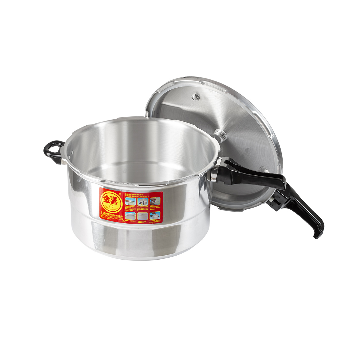 La olla tiene capacidad para 13 litros, viene acompañada con una rejilla y está fabricada en aluminio durable y ligero para una cocción eficiente.