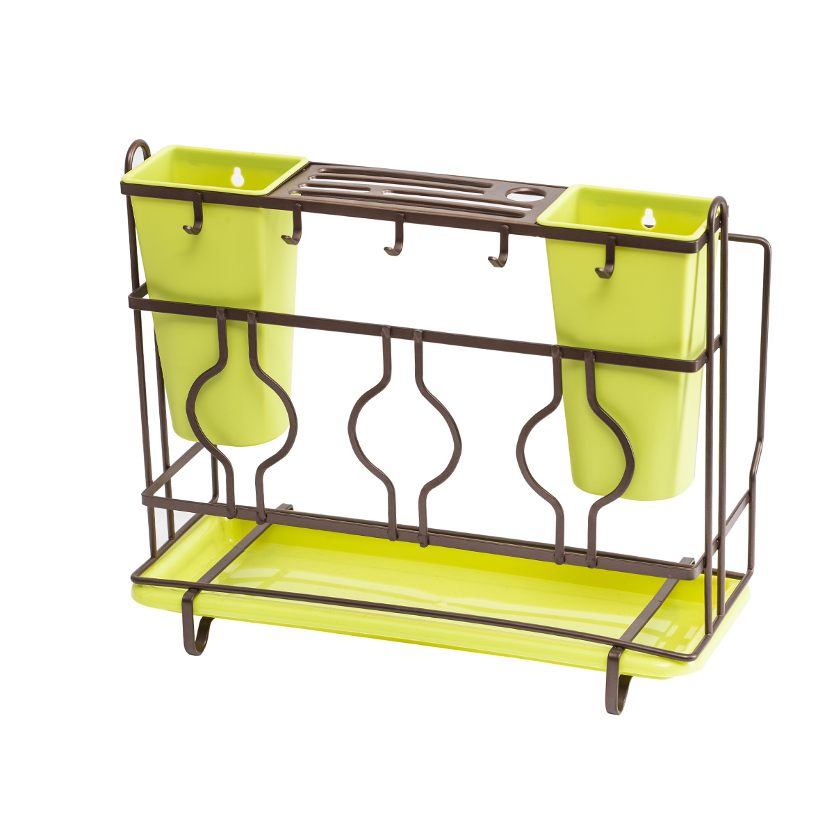 Este organizador de utensilios de cocina esta hecho de hierro, lo que lo hace sumamente resistente. Con el podrás ahorrar muchísimo espacio pues mantendrás de manera ordenada tablas de cortar, espátulas, cucharones, cuchillos y más. Este soporte tiene una estructura simple pero de gran funcionalidad.