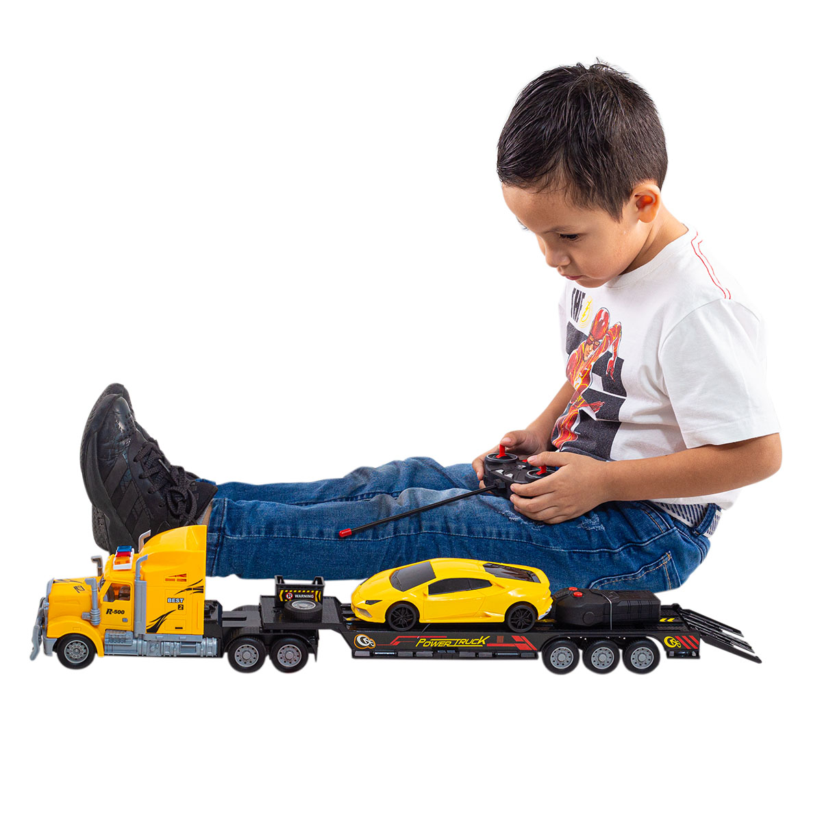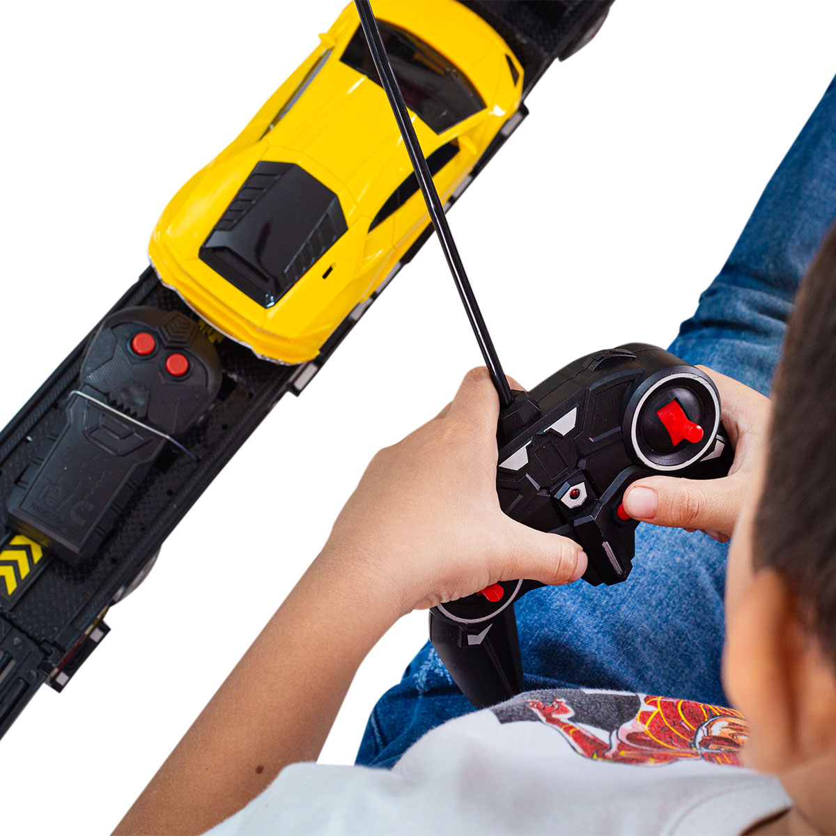¡Sorprende con este Zúper regalo! Este camioncito transportador es ideal para regalar en un cumpleaños o por el Día del Niño. Funciona a control remoto por lo que podrás maniobrarlo en la dirección que desees y las ruedas tienen luces de colores incorporadas lo que le da un aspecto más divertido. Recuerda que este juguete es recomendable para niños desde los 6 años en adelante.