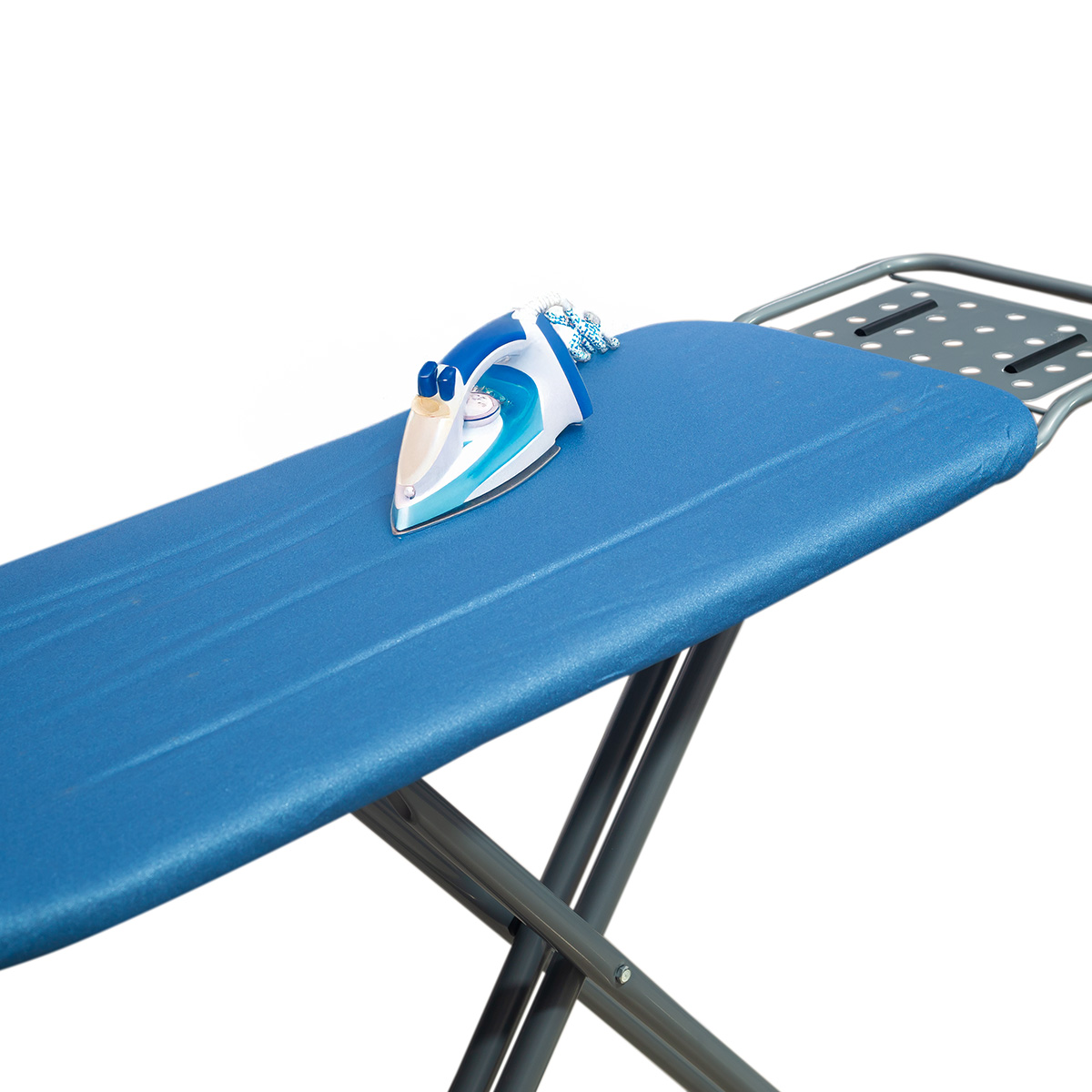 Tabla con patas plegables, fácil de guardar. Estable y duradera te dará comodidad a la hora de planchar y podrás decirle adiós a la ropa arrugada.
