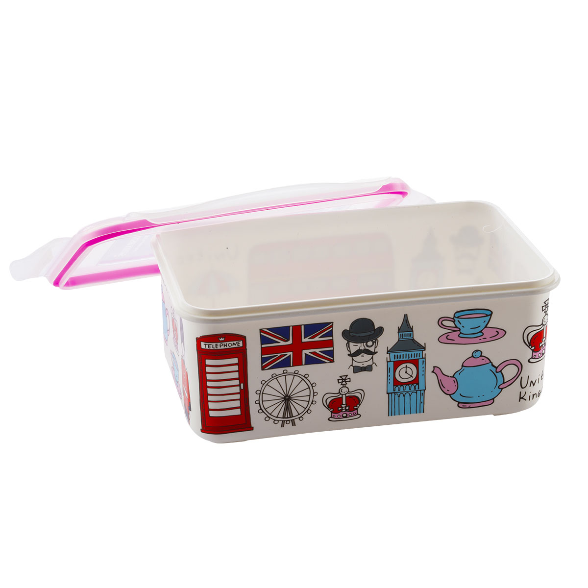 Este taper grande es parte de una colección de tres piezas inspirada en Inglaterra. Podrás almacenar en él alimentos, granos, semillas y hacerlo tu aliado para las loncheras. Sin embargo, gracias a su diseño lo podrás incorporar como cajita de almacenamiento y decoración para tu hogar. Podrás guardar en él joyas, cables y cargadores, maquillaje y muchas otras cosas más.