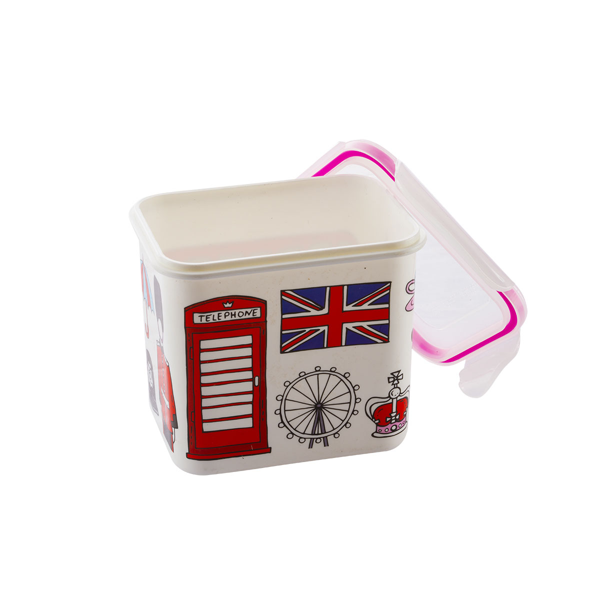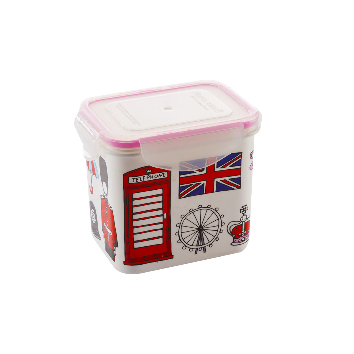 Este taper chico es parte de una colección de tres piezas inspirada en Inglaterra. Podrás almacenar en él alimentos, granos, semillas y hacerlo tu aliado para las loncheras. Sin embargo, gracias a su diseño lo podrás incorporar como cajita de almacenamiento y decoración para tu hogar. Podrás guardar en él joyas, cables y cargadores, maquillaje y muchas otras cosas más.