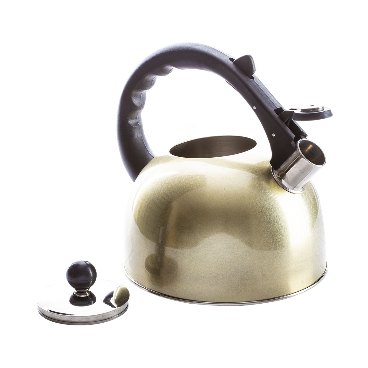 Tetera de acero inoxidable con un diámetro de 19 cm, pito silbador y tapa de acero inoxidable. Mango aislante de calor. Pulido brillante por fuera. Diseño moderno y ergonómico. Lavar la pieza con agua tibia y secarla con un paño suave antes y después de cada uso para prevenir cualquier daño en la superficie. Es recomendable usar a fuego medio o bajo.